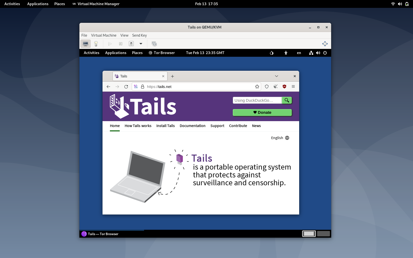 Consulteu com executar Tails a virt-manager.